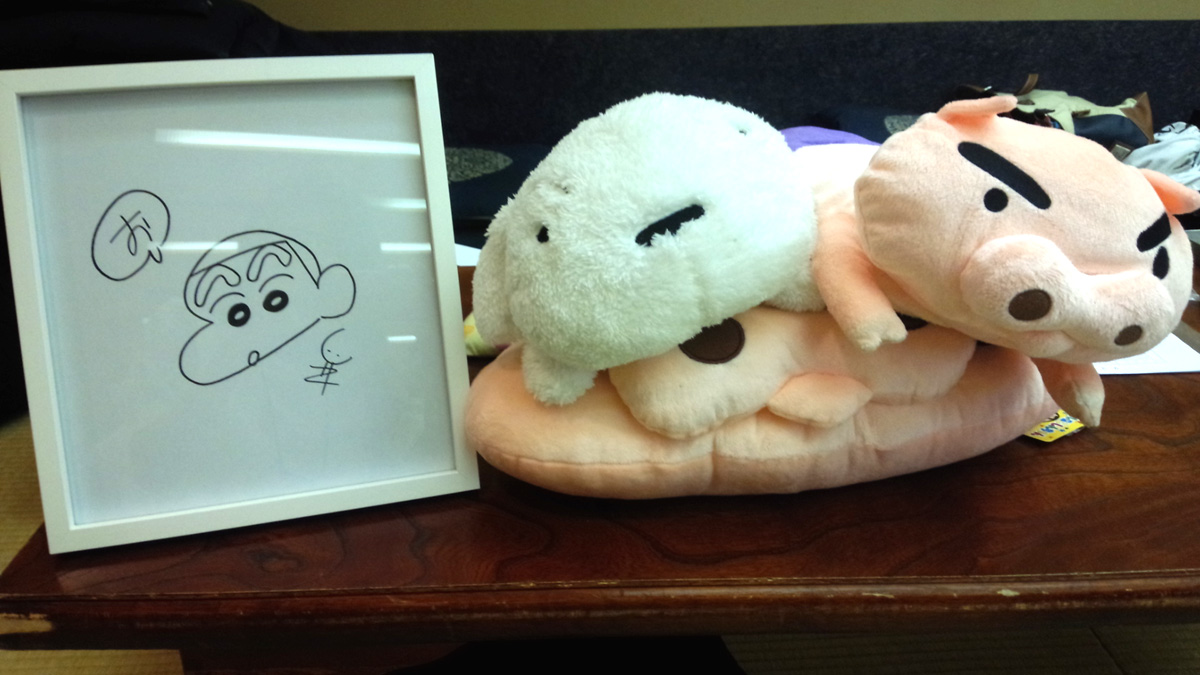 おなじみの(※シ○エイ動画さんが制作したものをこよなく愛する人たち略して)シン○イの人たちの部屋に入りオフ会スタート!机や座布団を並べたりDVDを観るためのスクリーンや機材を設置したりみんなが揃うまでしばしご歓談ください的なかんじで設営も楽しい時間!入口付近の机には臼井先生のサインとシロぶりちゃんが並んでいてアーーーッ可愛い!!!幸せ!!