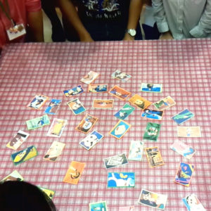 これ写真は他チームのなんだけど、うちのチームは「あー10巻まででよかった!」とか「カバー外しちゃってるからわかんない!」とか「中の色ならわかる!」「それゲーム変わっちゃう!」とか雑談相談するのと同時に絶対的自信を誇るNOBUさんが瞬間的に並べ替え、むしろテープで貼り付ける作業の方に時間がかかりました。う、うまく貼れない~!><とかそこ苦戦するとこじゃないですから