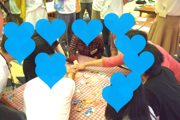 すごろく後は休憩というか自由時間でいろんな方と雑談したりお宝拝見したりDVD観賞したりまったりタイム。そしてさっきの4班に分かれたまま、すごろくトークでチーム内の絆も深まってウォーミングアップにもなったころあいで恒例のチーム対抗ゲーム大会に突入です!