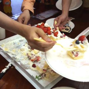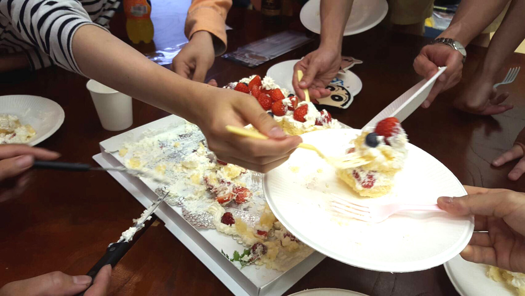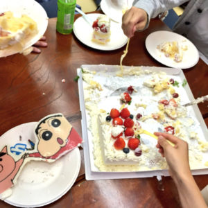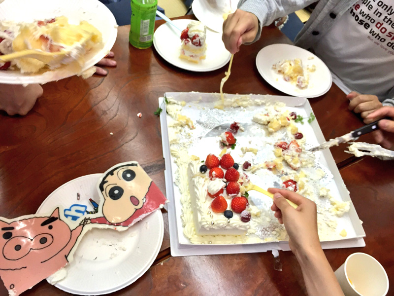 今回の賞品は25周年ケーキ!!スゲーナスゴイデス!!って群がりながら安定の撮影大会が始まりました。とても大きいので1位チームだけでなくみんなで食べました!スタッフ全員でおいしくいただきました!