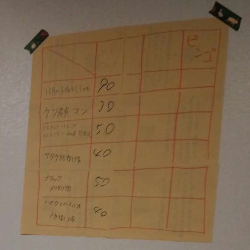 一人が歌詞を書き出してみようと提案し、一人がゲシュタルト崩壊するほどダメダメダメダメ…とボードに書き起こし、それぞれがワンフレーズごとに思い出し歌っていってまさにチーム一丸となって出した答だったからさ~!一人だったら絶対無理だし11月の子持ちししゃもチームのチームワークに感謝です。
