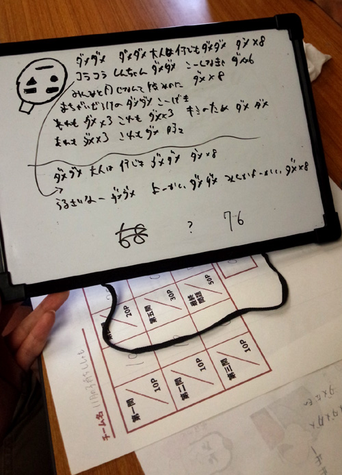 残念ながら優勝はできなかったけどすっごいよい戦いだった!悔いはない…!!ダメダメのうたに出てくるダメの回数当てクイズという鬼畜最終問題には全チーム頭を抱えました!(笑) でもなんとか正解できたのが嬉しすぎて思わずみんなでハイタッチしたのは忘れません…感動した。